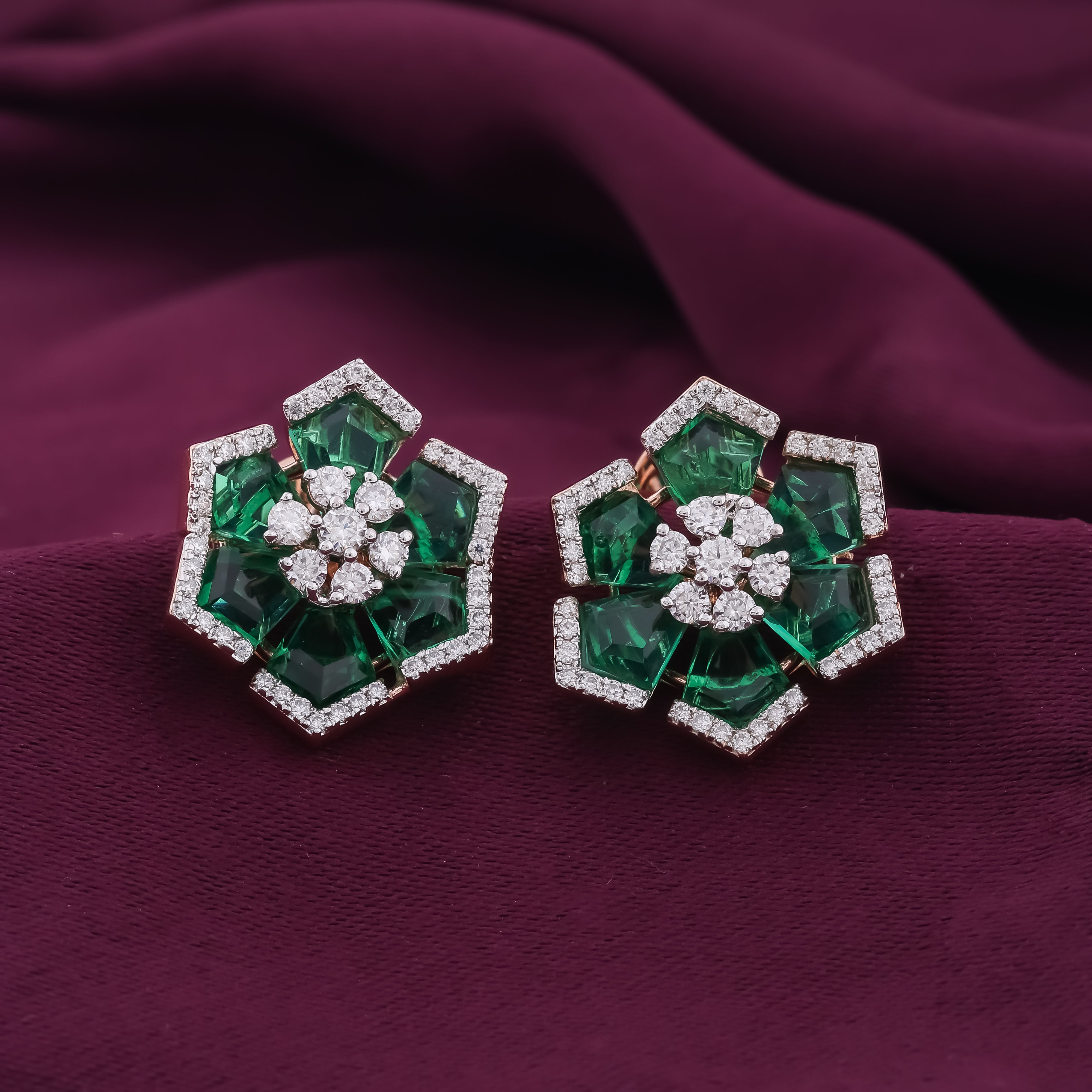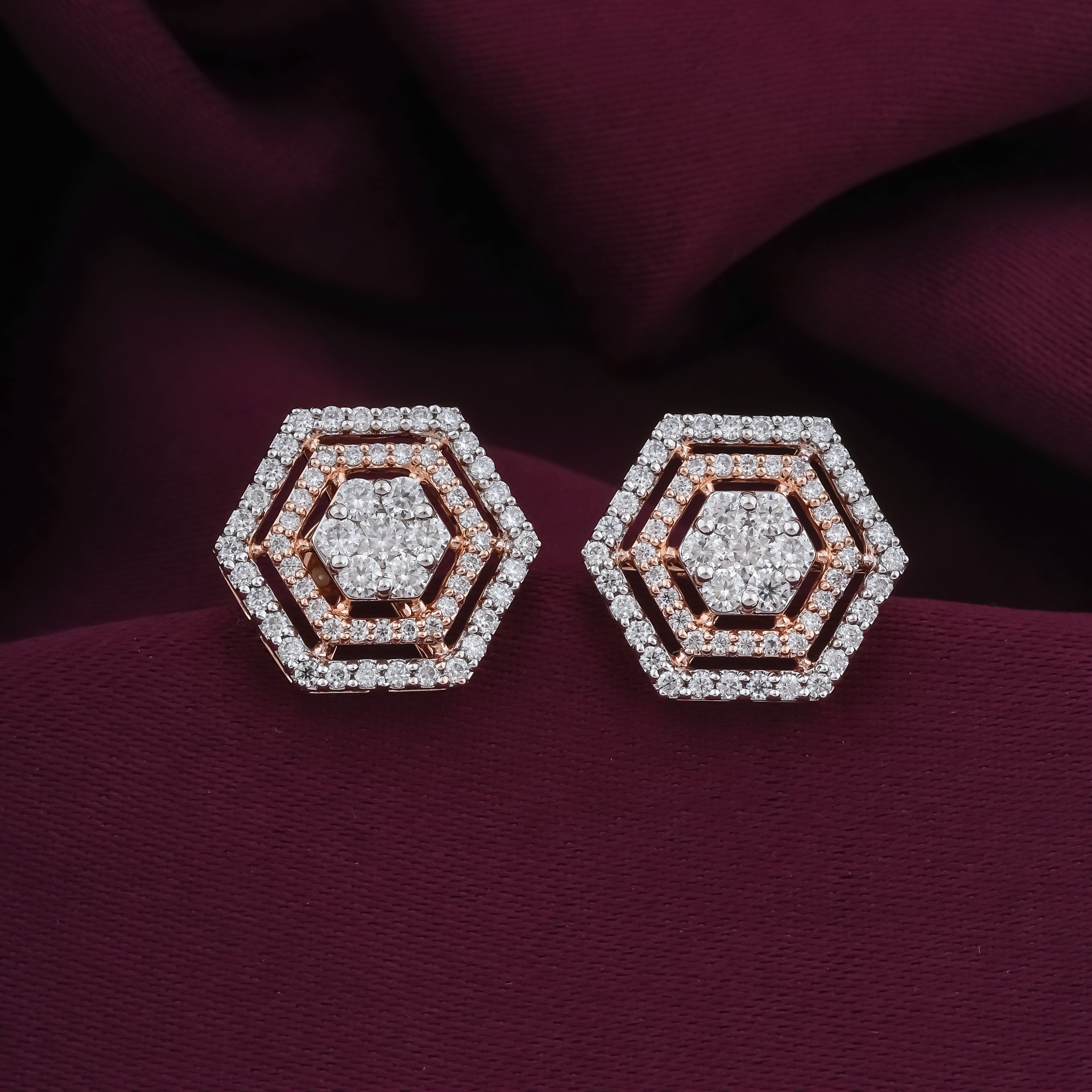 CLASSIC HEXAGON SHAPED ROUND DIAMOND EARRINGS