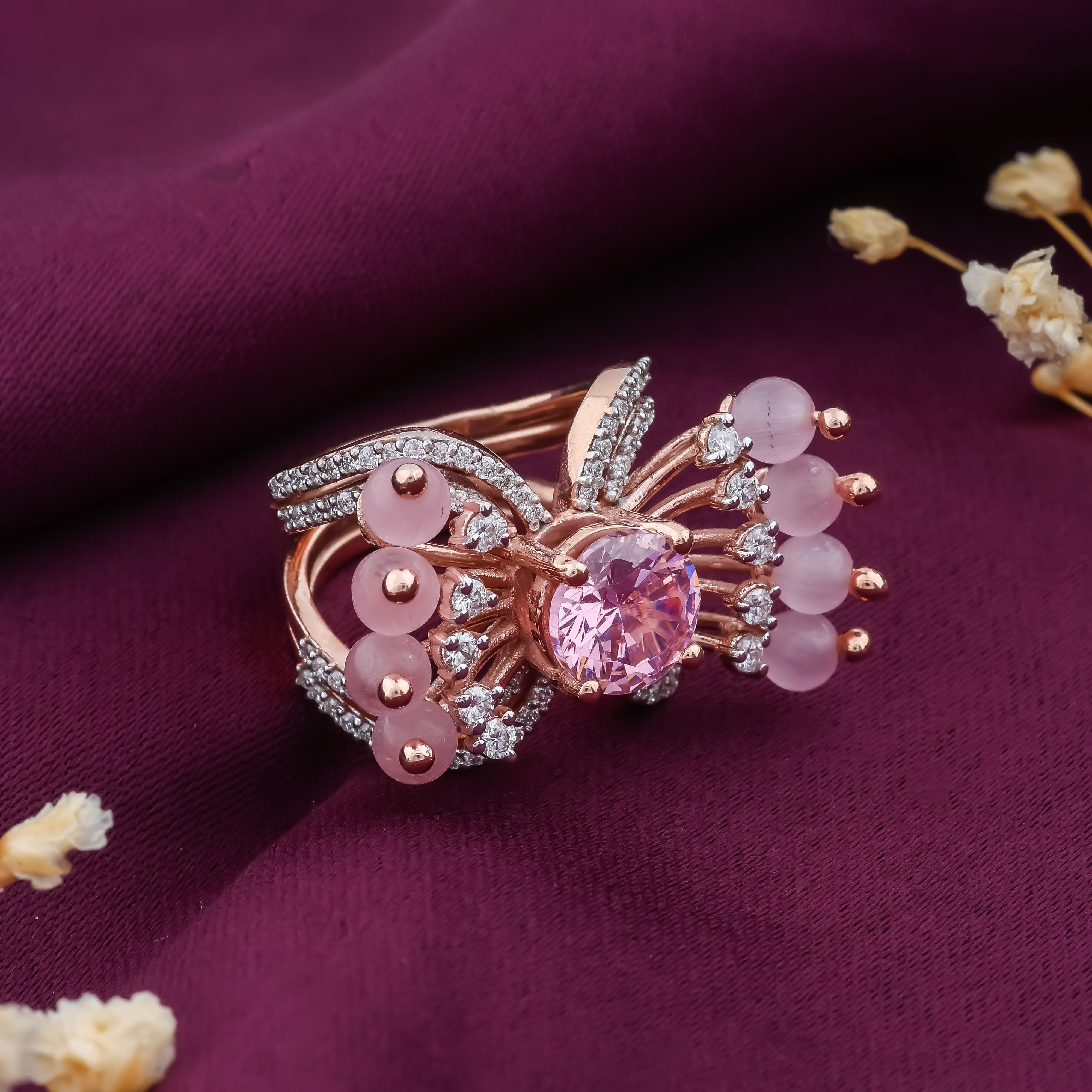Butterfly Shape Eligance With Light Pink Stone Ring