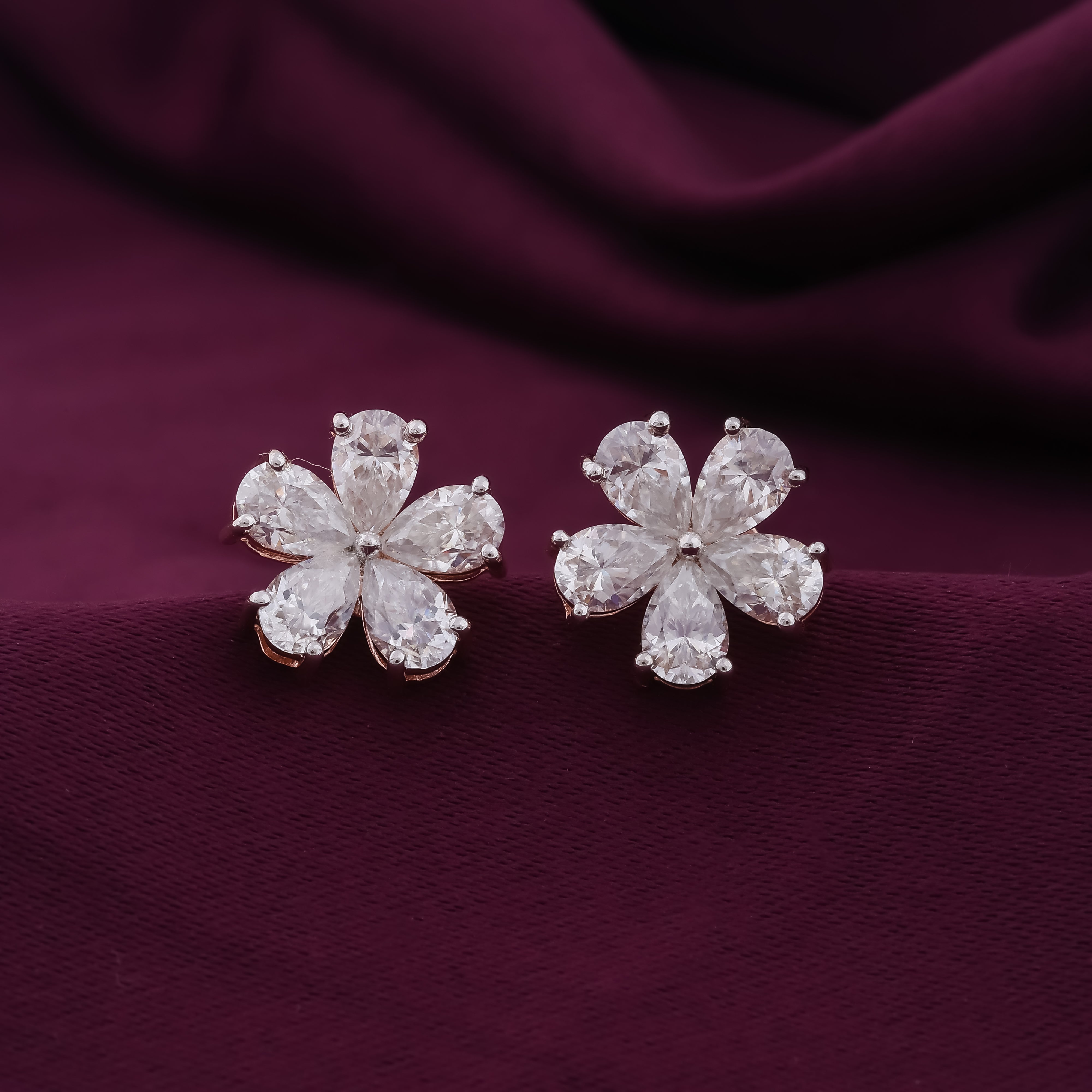 Diamond 5 Petal Flower Stud Earrings