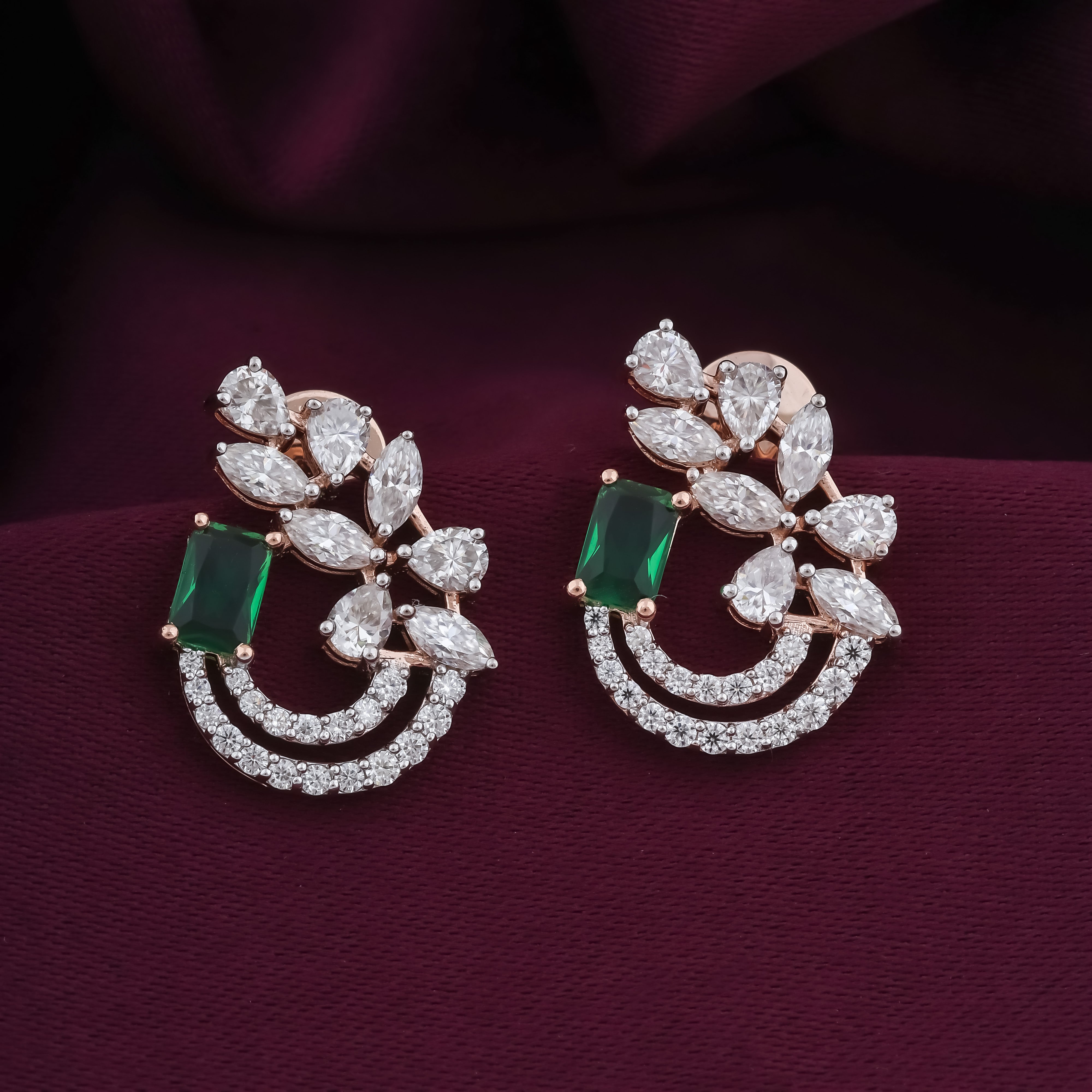 Leaf Pattern Earring with Green Color Stone