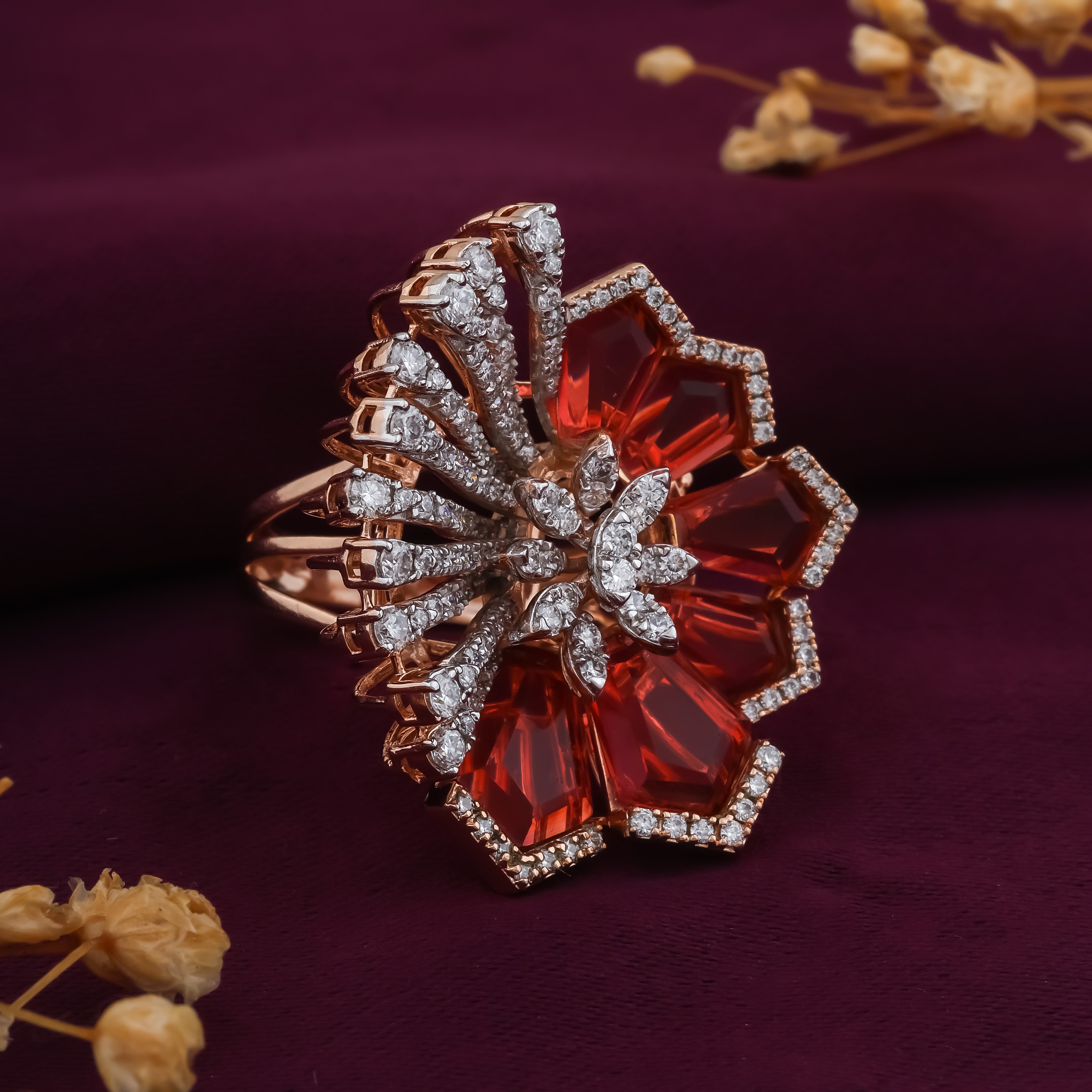 Sun Flower Cocktail Red Stone Ring